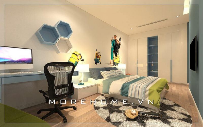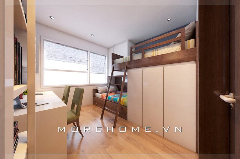 Tủ quần áo gỗ công nghiệp giá rẻ với gam màu trắng nhẹ nhàng được gia chủ lựa chọn cho phòng ngủ của 2 bé trai
