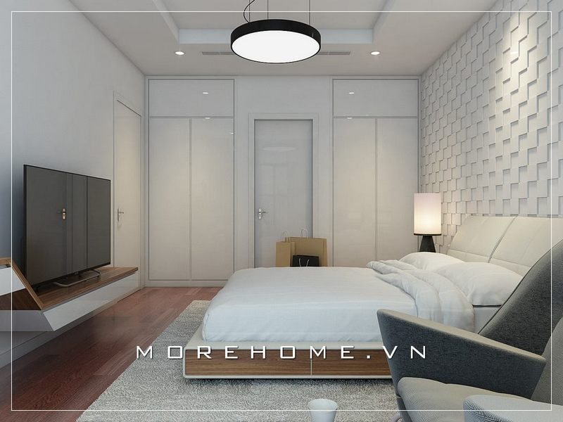 khiến không gian căn phòng trở nên rộng rãi hơn rất nhiều. Gam màu trắng phù hợp với mọi độ rộng hẹp của không gian, làm sáng bừng cả một góc phòng