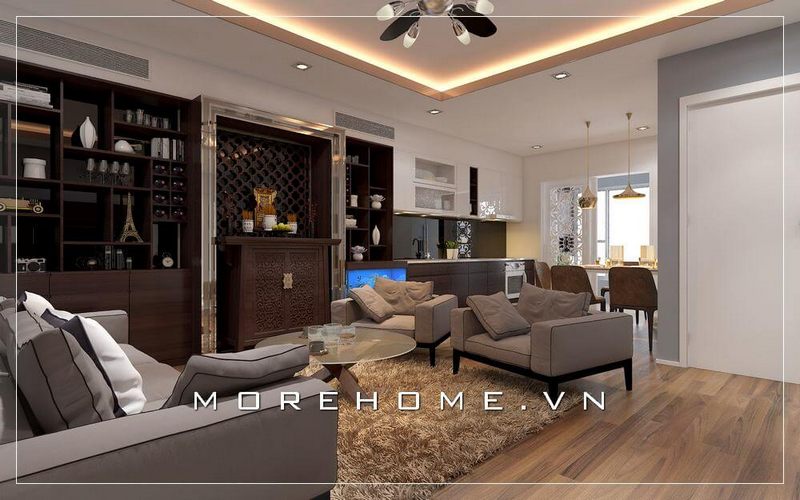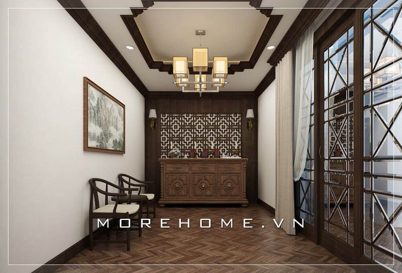 Mẫu tủ thờ gỗ hiện đại màu nâu trầm cho nhà chung cư.